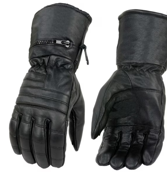 Full Gauntlet Rain Mitten Leather Gloves: Our Full Gauntlet Leather Gloves offer a removable rain mitten, conveniently stored in a zipper pocket on the long cuff, provide a protection against changing climates and ensure your hands stay dry. These warm motorcycle gloves are versatile accessories suitable for various weather conditions, like fall, winter, and spring riding. Our waterproof gloves offering an extra layer of defense during your ride.